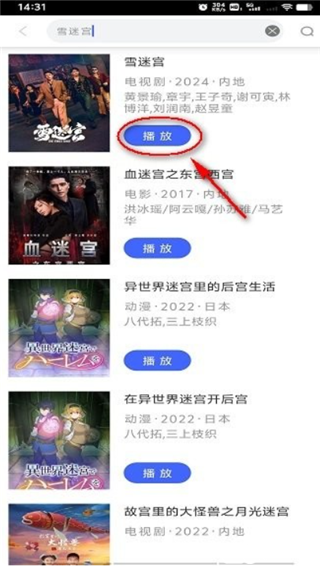 3、像我如果想看雪迷宫的话,直接搜索到播放就可以了。