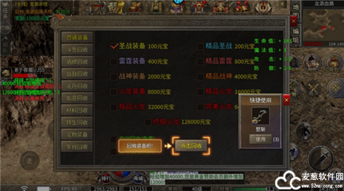 3、击败野怪有一定几率掉落装备,不合适的直接【点击回收】