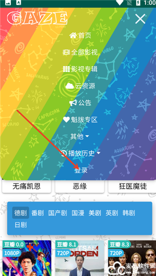 2、点击右上角的三条杠即可打开设置界面,选择下方的【登录】