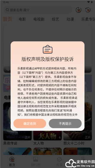 3、首页各大分类板块囊括了电影、电视剧等,还有特色的乐柔专区,点击右下角【我的】。