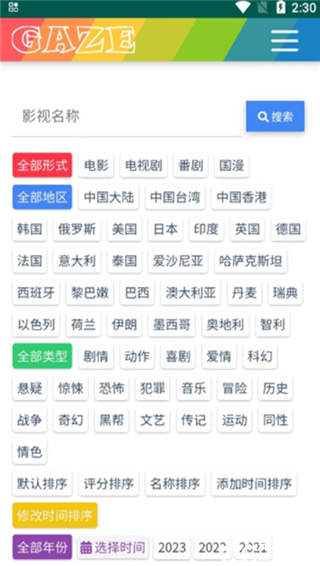 2、大家也可以直接在分类版块里按照形式、地区或者类型进行筛选,快速找到想看作品。