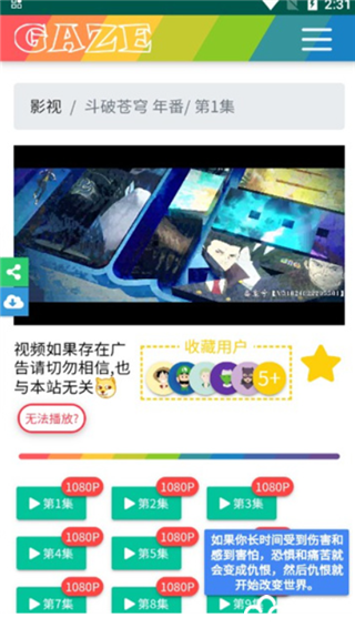 3、比如我想看斗破苍穹年番,点击即可进入播放页面,开始追番。