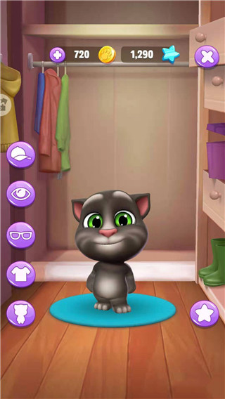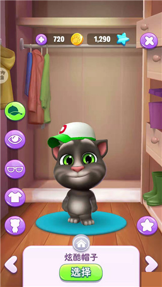 1、首先我们进入卧室,点击左边的衣柜,进入这个衣帽间后,左边有一列分类,分别是帽子、眼睛、眼镜、衣服和小猫的皮毛,总共有五项分类进行打扮。