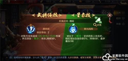 6、起初的武将只赋予了[1个绝技+4个被动]。但为保证武将间的相对平衡,引入武将新设定:星象、星象技、技能连携机制。