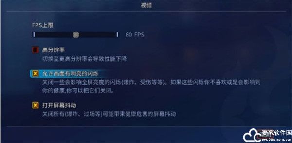 可选择更改FPS上限为30帧、60帧及无限制;