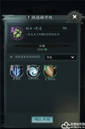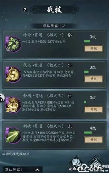 战技栏可以通过消耗其它战技进行升级,以此进一步提升战技的能力。在达到一定境界后,可至多同时装备4个不同的战技。因为升级的是战技栏,所以在替换技能时避免了巨大的资源投入和消耗。