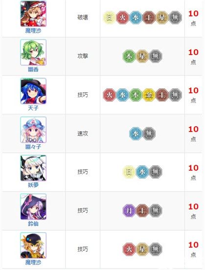 攻击:雾雨魔理沙丨洩矢诹访子丨依神女苑