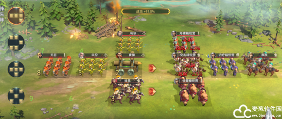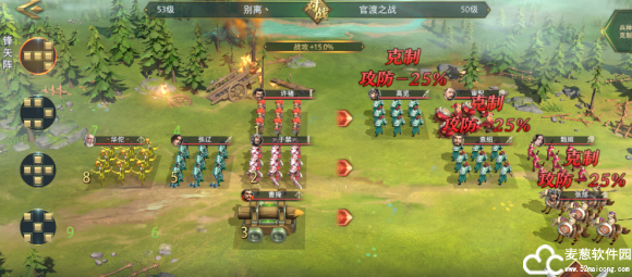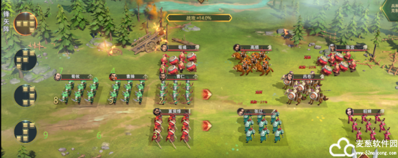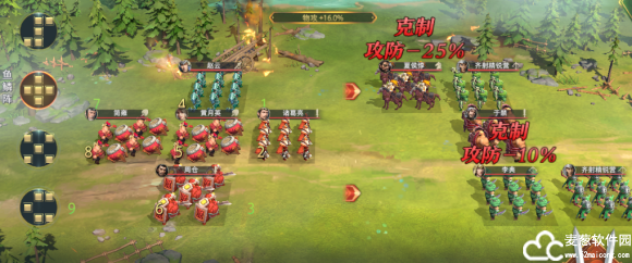 操作方法2:使用鱼鳞阵,曹操放前面,使用冲车兵种,其他调整对应克制状态。荀彧一样更改为鼓兵。