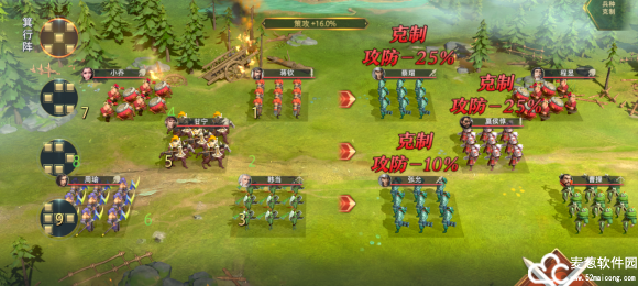 操作方式:使用锋矢阵(张郃有直线攻击)张辽放中间位置(克制对面加血的),可以放在第2排中间。调整前排站位切换兵种为推荐克制的。