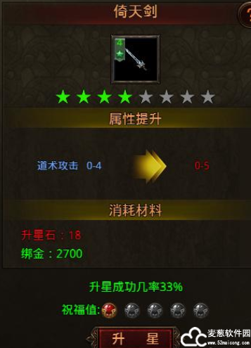 3、升星属性绑定在装备上,更换装备时可传承给新装备