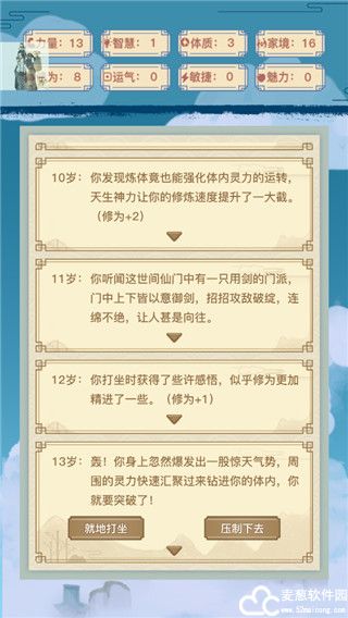 串门事件:运转灵气(体质+2,修为+1)