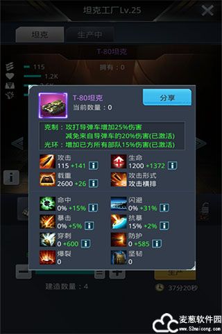 坦克特点:增加对导弹车伤害25%,减免导弹车伤害20%,自带抗暴。
