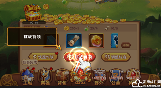 游戏初始领主大人跟着我们的指引一步一步完成指导即可,前期我们的主要任务就是挑战主线关卡快速提升领主等级。