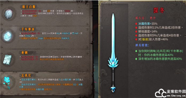 2、然后冰流派深冬和太祖比较契合这个流派的战斗,词条尽量刷新到和冰冻相关,装备方面核心带狼王后面是寒冰青钢和北风,北风词条越牛这一套伤害越离谱所以一定要找到传说的北风这样才能算是顶尖的配置,buff也是追求极限的伤害偶尔点一点生命给自己一点容错空间,这个一套不但伤害强大还能控制怪物的移动速度所以玩家新手过关一般会选择这个搭配,在狂雪更容易出传说装备和buff也是很契合这一套的打法。
