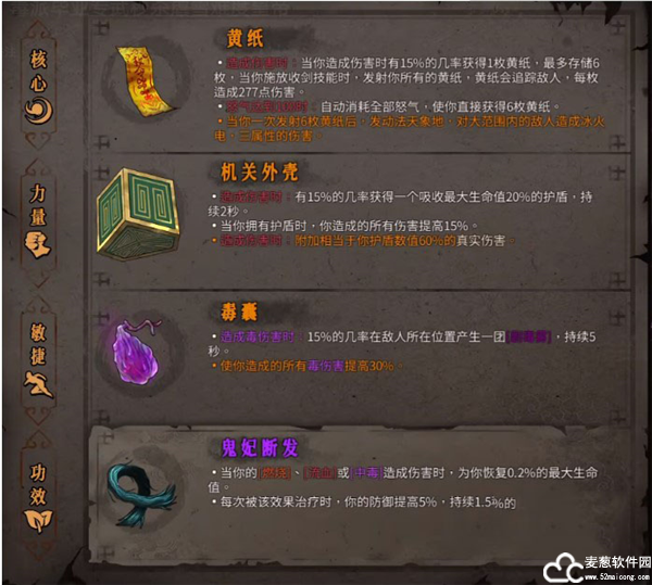 3、毒伤太祖和斩龙都是契合的,玩家点出毒刃加上装备黄纸以及必须要找到的断发和毒囊如果有断指最好没有其他装备例如增加玩家生存能力的也是可以的,这一套就是慢慢的消耗敌人的血量然后利用断发的特效给敌人致命的打击当然前提你能刷到黄色的核心断发不然就是核心黄纸的技能伤害造成海量的输出。