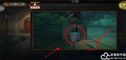3、先用螺丝刀修稿水龙头,再拿铁桶接水,把水倒进树洞内,就可以得到蘑菇铜卡