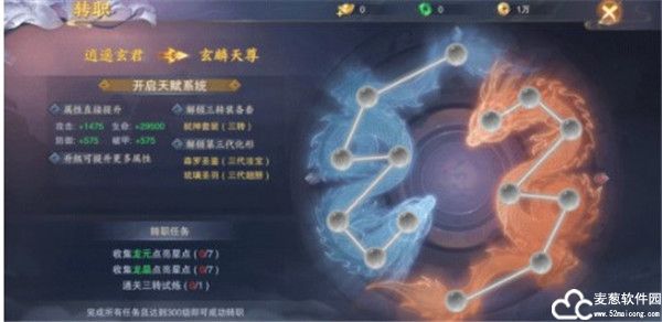 逍遥玄君达到280级后,便会开启三转任务。三转任务总共有3个阶段,根据任务提示完成3阶段的任务后,可成功转职。