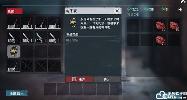目前作用未知(砍帐篷,砸行李箱有几率给)