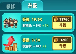 在升级系统中,大家可以看到增加浏览量、收益率以及观光团人数的选项。