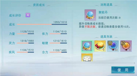 应用元魂之灵。极或元魂力量。极,能提高异兽,调整物理学和法力进攻的标值。