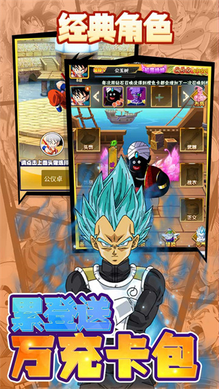 卡牌手游。游戏大家所熟知的龙珠为题材打造,还原了动画中的所有人物和剧情,让你享受最原汁原味的热血冒险体验。在游戏中,玩家们需要利用自己手中的卡牌组成不同的组合来和其他的玩家进行对抗。将对方所有的卡牌淘汰即可获取游戏的胜利,喜欢的话就赶紧来下载吧。