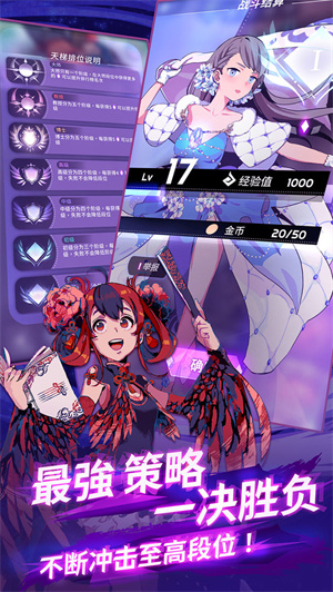 2、每个卡牌英雄都有灵动自由的招式,还有天梯排行竞技榜,指尖完美展现自己独特的实力。