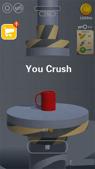 液压机模拟器,游戏采用了清新简约的动漫风格来进行打造,游戏中你需要控制一台液压机来压咋各种各样的物品,将物品成功的压岁能够获取大量的金币,不同的物品需要施加的压力也是有所不同的,是不是很有意思呢?如果你也喜欢的话就快来下载吧!