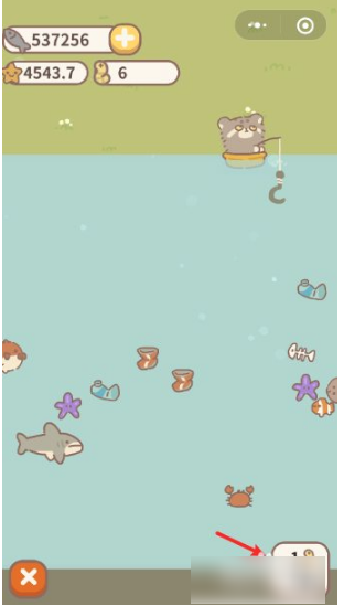 在进入鱼塘,点击右下角的【下钩】消耗鱼饵,进行钓鱼。