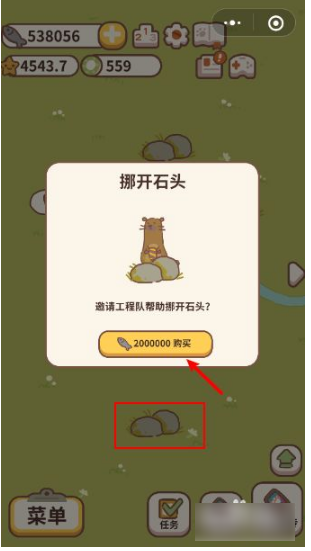 如果想更多的摊位,需要【花2000000鱼干】请工程队帮助挪开石头,就可以进行更多招租了。