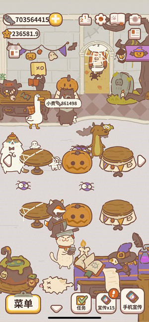 3、前期会比较累,因为需要非常频繁的手动拉客、点击客人要吃的食物下单、拾取地上的小鱼干。