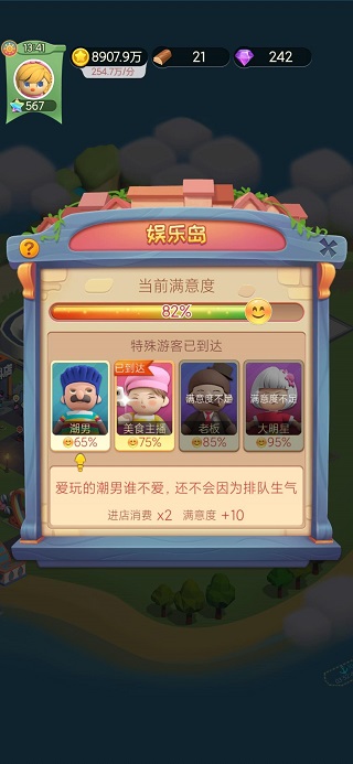 这儿必须留意的一点是住户的满意率。协助住户寻找物品后,会提升住户的满意率,独特顾客会维持高满意率!独特顾客毫无疑问会赚大量的钱。一个小窍门是留意独特顾客抵达需要的時间。当独特顾客抵达时,她们可以挑选右侧的广告宣传。buff例如五星服务项目减少服务项目時间,一般有利于提升满意率。