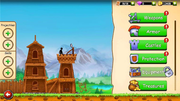 1.在游戏中,你务必协助火柴人从敌人的进攻武器装备中保卫你的古城堡。