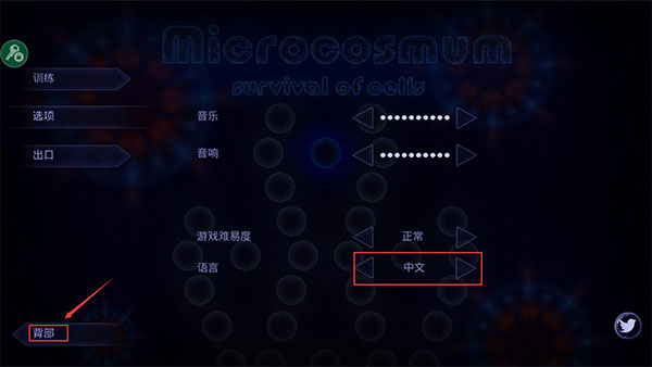 4.转换到中文选择项时,可以点击左下方的后背按键回到,游戏会全自动储存您的改动。