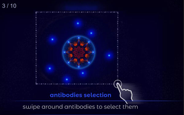 5.你能根据滚动动作,来选中中任何的抗原,也就是图内所显示的深蓝色小闪光点,便于对他们传出后面命令。