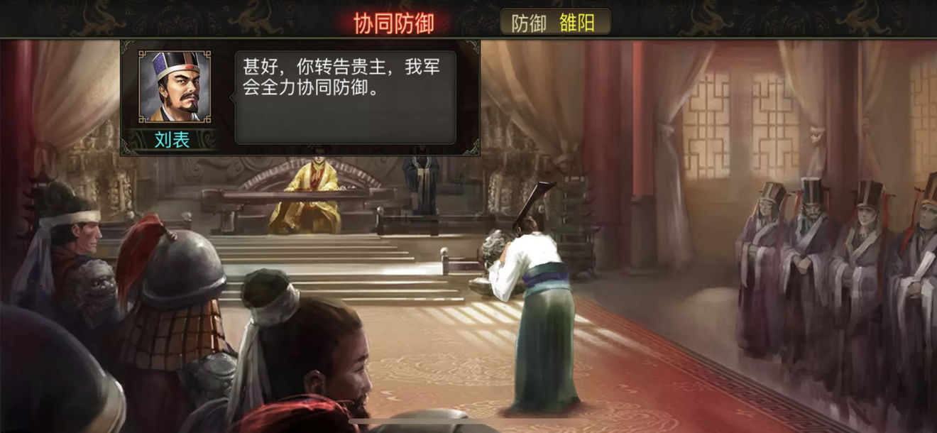 会攻打洛阳的有曹操,袁术,袁绍,这三人,我们只要守住左上角的孤城,静待表哥援兵到来即可。