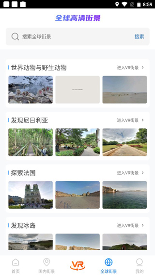 4.完全免费VR沉浸式体验沉浸式解读,全世界旅游景区一览,出门必备,街景屏幕分辨率高。