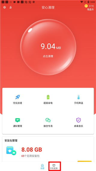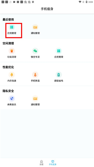 1.先进到手机软件首页,随后点击手机减肥瘦身;