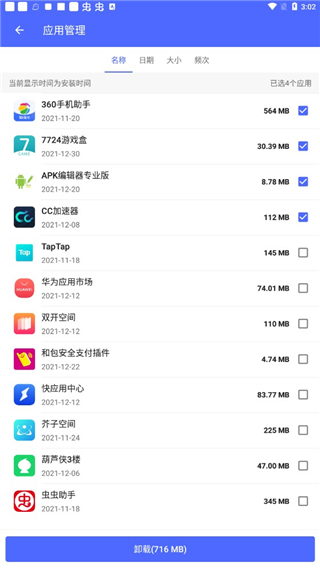 3.这时,只需查验您想卸载掉的应用软件,点击卸载掉就可以。