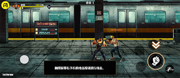 1.开始游戏后,触碰显示屏左下方的键盘按键来操纵人物角色的挪动。请移动到对手眼前;