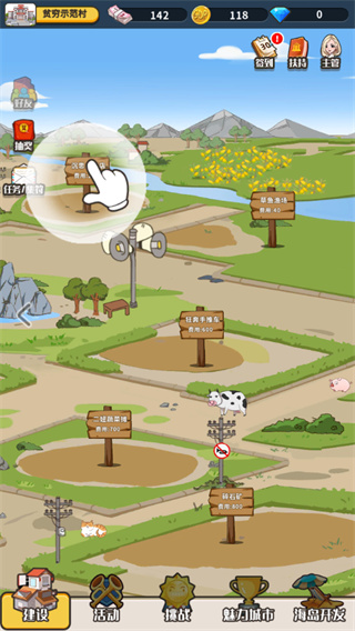 4.致富俺们村无限金币钻石版中玩家领着村民创建养殖厂、修建厂,设立餐馆,持续造就收益;