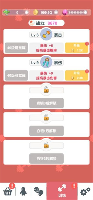 3.在练习中,我们可以更新爆击和暴伤,那样大家就更易于在游戏中获得胜利。