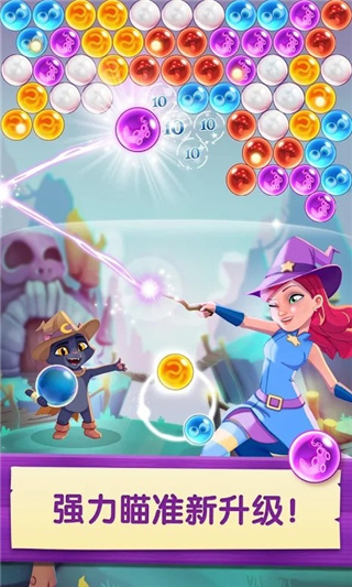 泡泡魔女传奇3是一款魔力四射的泡泡射击益智游戏,同时也是系列的第三部作品。和前作一样,该作采用2D风格设计,色彩搭配鲜艳明亮,奇幻的视觉体验,让你仿佛置身魔法世界,并且在保留传统游戏特色的基础上,还加入了很多创新的玩法,更新更好玩的游戏模式,数百个神奇的泡泡射击关卡,更有特殊的魔法道具助你勇闯难关。游戏在玩法上也是相当丰富,既有消除顶部泡泡的任务,又有解救被围困的幽灵玩法,更有高难度限定次数发射等挑战!华丽的特效,简单的操作,既保留传统特色又兼具创新的游戏玩法,带领玩家进入一个奇幻又好玩的魔法世界。游戏中还设计了数百种神奇的泡泡射击关卡,每完成一关不仅会有等级评分还会解锁相应的魔法道具和泡泡,喜欢消除类游戏的玩家,赶快来免费下载