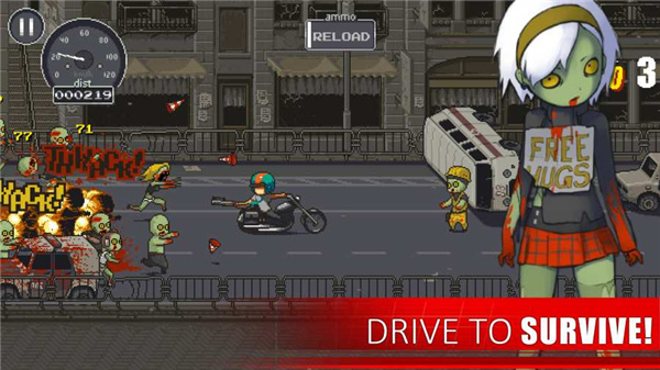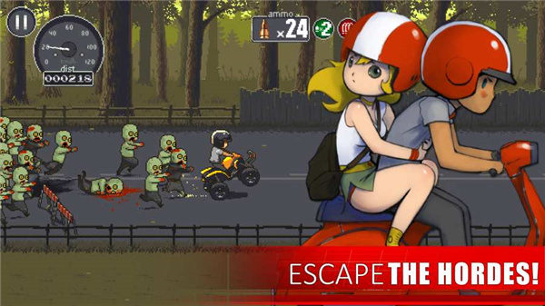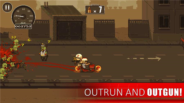 僵尸突围是一款以僵尸为题材打造的动作射击类闯关手游,游戏的画质采用了经典的像素风格,玩家们在游戏中驾驶自己的摩托车来进行闯关冒险,你可以用手里枪来击杀僵尸,也可以直接用摩托车将僵尸撞死,具体如何操作全看玩家自己,听着是不是很有意思呢?感兴趣的话就快来下载体验吧。