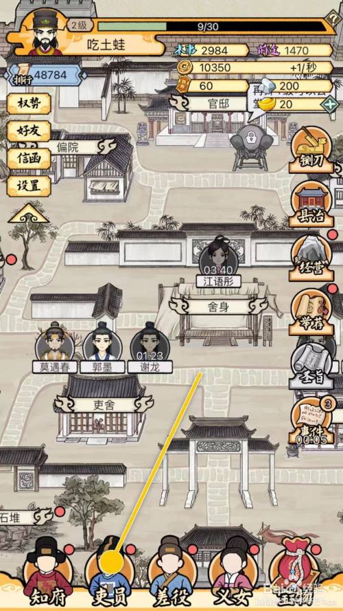 在“主界面中,点击图中的“吏员”图标。