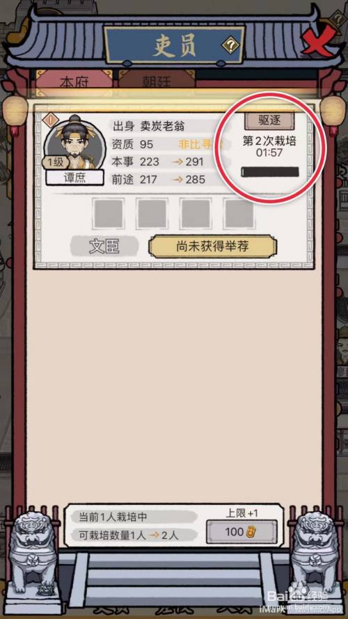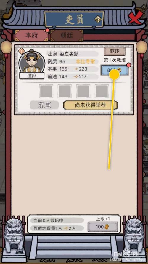 在“吏员”界面框中,点击上方的“栽培”按钮。