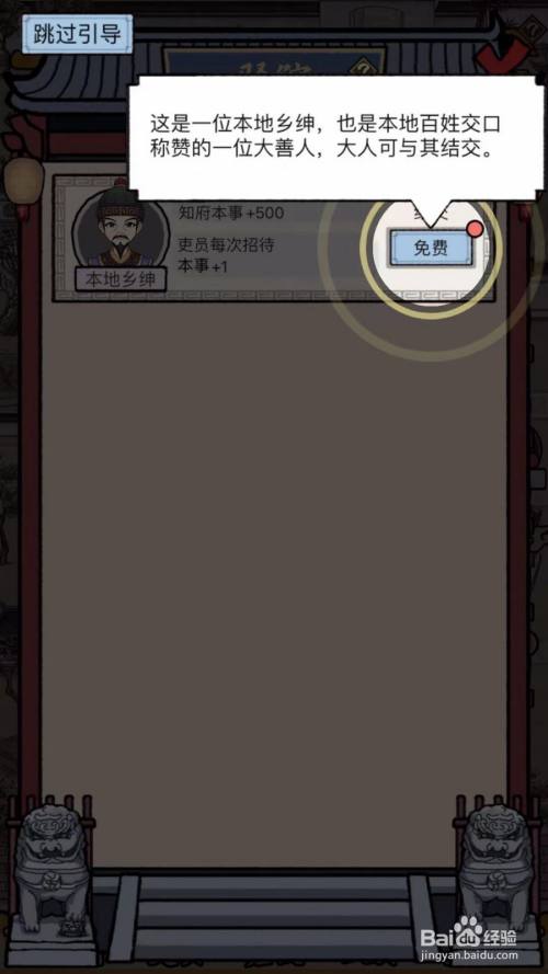 在“驿馆”建筑物中,点击“本地乡绅”面板中的“免费”按钮。