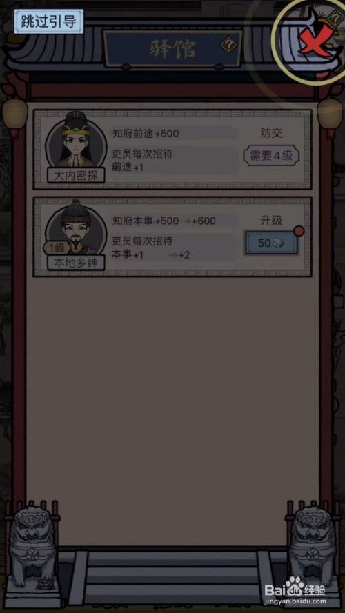 与“本地乡绅”结交后,点击右上方的“X”按钮。
