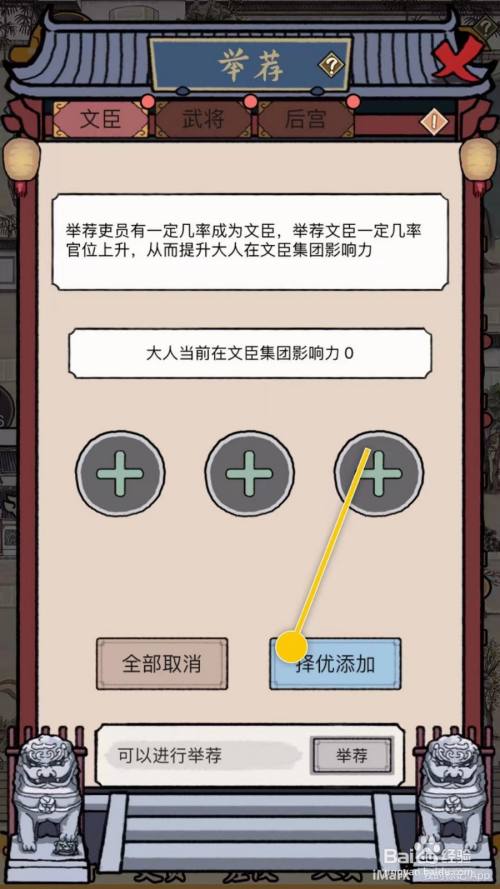 择优添加吏员后,点击“举荐”按钮。