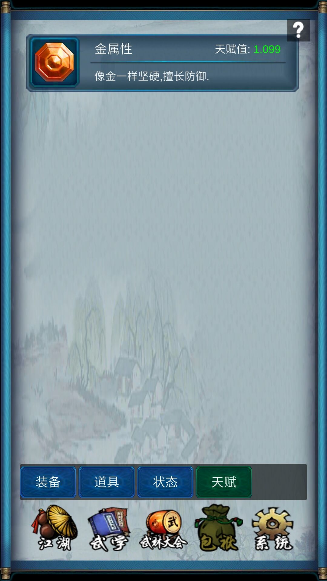 初代天赋只有一个基本属性,对应增加能力,比如土属性可以提高闪避。