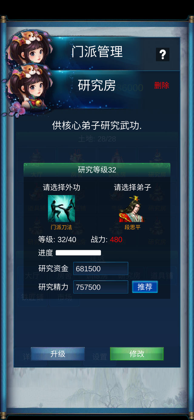 (2)普通弟子的武功等级由研究房的成果决定。
